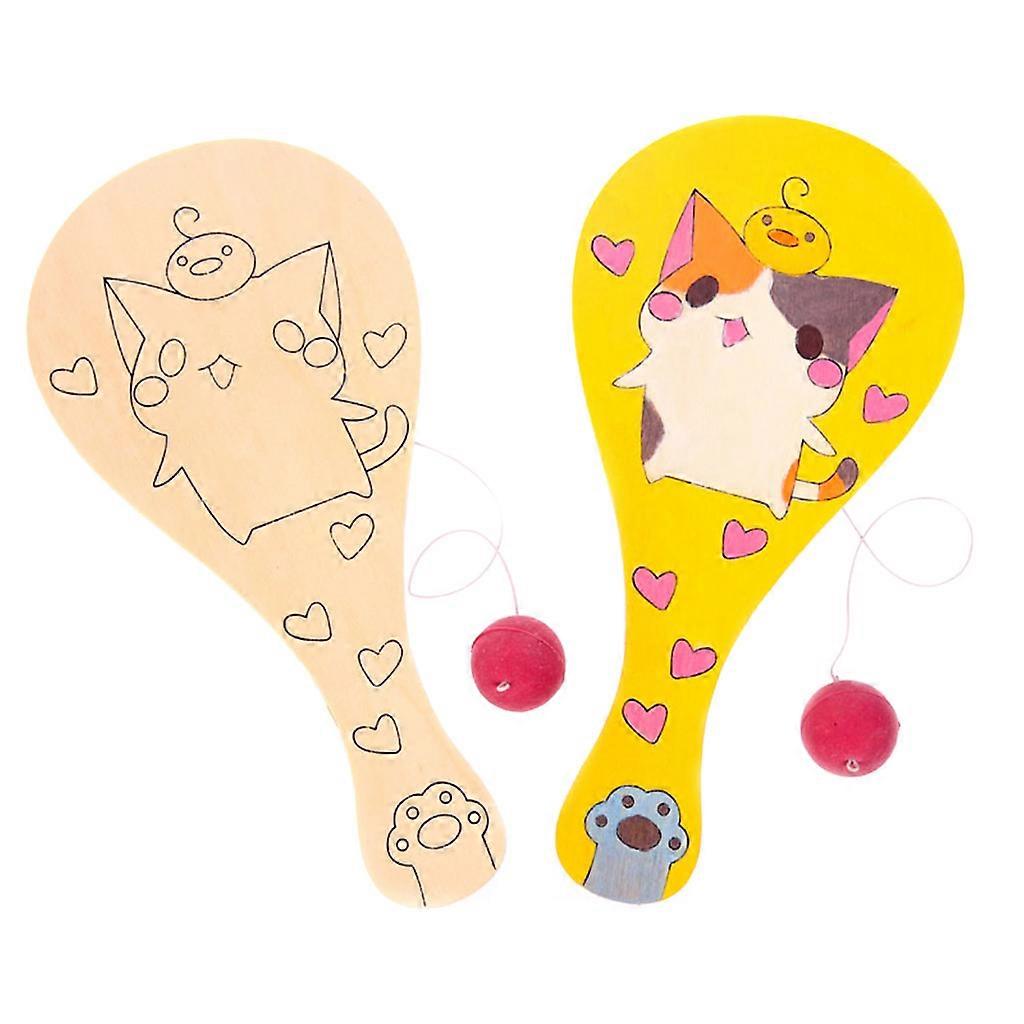 1PC Brain Developmental Mini Hand Painting Racket for Baby Toddlers Wooden Racket Educational Preschool Paddle Ball Toys