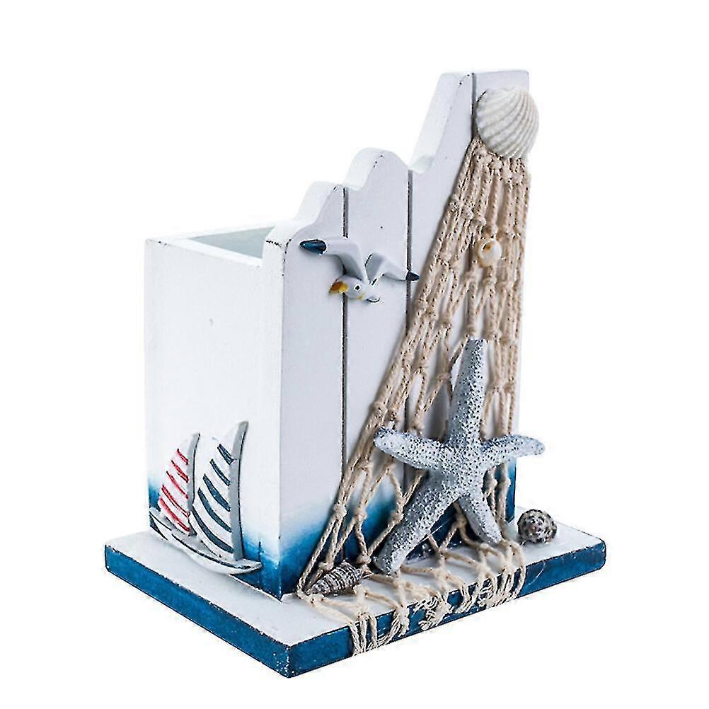 1pc Wooden Pen Container Brush Pot Tubular Penrack For Home Desk Office (white)