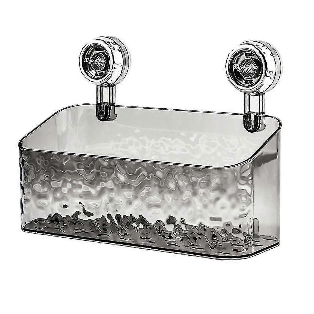 1pc Rotating Suction Cup Storage Rack Bathroom Non Perforated Wall Mounted Organizing And Storage Box Transparent-gray,l