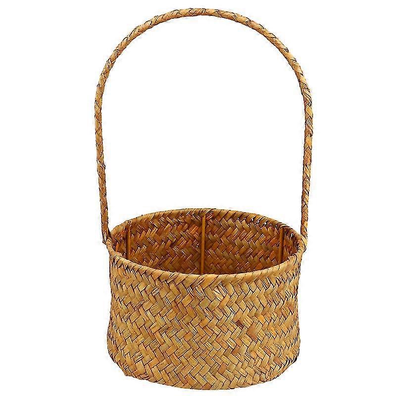 1pc straw woven storage basket with handle succulent planter knitted flower basket practical flower container desktop decoration (orange size l)