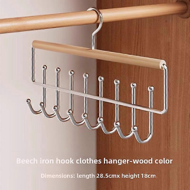 1pc Versatile Wooden Hat Organizer Rack with Hooks �C Ideal for Caps, Belts, Ties, and Accessories Storage �C Space-Saving
