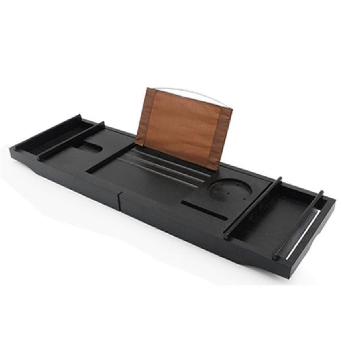 1PCS Bamboo Expandable Bathtub Tray Bathroom Organizer with Cellphone Tablet and Wine Book Holder B
