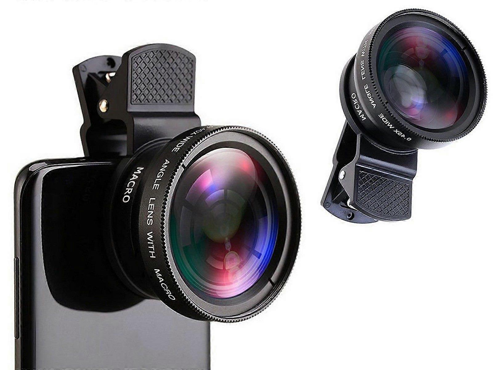 1PCS 2 in1 Portable 0.45PCS 49UV Wide Angle Macro Phone Camera Lens Kit Black