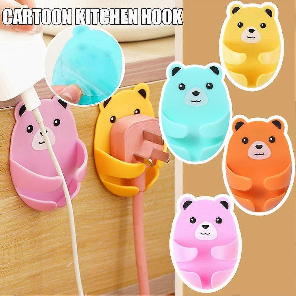 1pcs Orange Bear (C)$ Exquisite and practical bear plug hook seamless adhesive power plug socket multi-function hook without punching