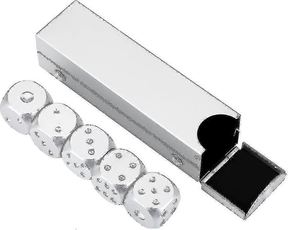 1set Aluminum Alloy Dice Table Game Dice Set With Storage Box (silver Rectangular Box)