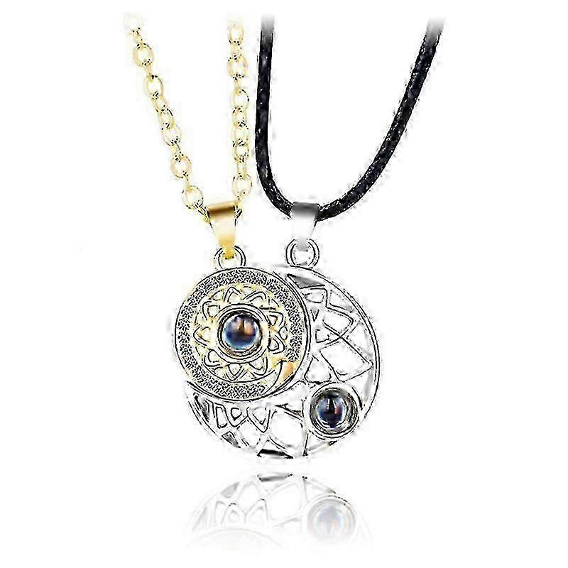 2 Pcs Projection Stone Long Distance Sun Moon Couple Necklace Men and Women