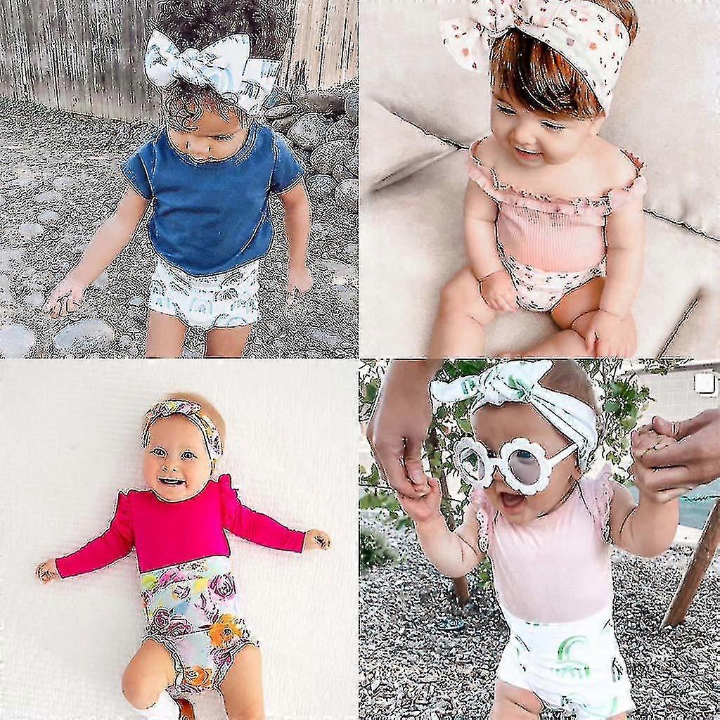2 Pcs Baby Summer Print Shorts Headband Set Short Pants Trouser Knotted Bow Hair Band Kit For Newborn Infants