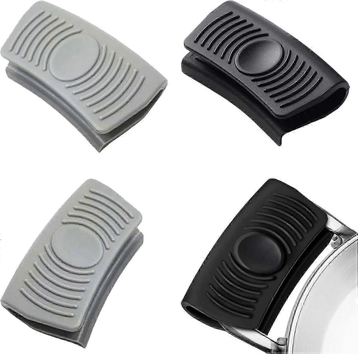 2 Pairs Silicone Handle Holder,Non-Slip Assist Hot Pot Pan Handles Cover,for Cast Iron Pot Pans Frying Griddles,Black,Grey