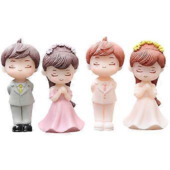 2 Pairs Small Bride Groom Couple Dolls Figurines, Wear Resistant Wedding Cake Decor, Romantic Home Decorations for Valentines Day Parties