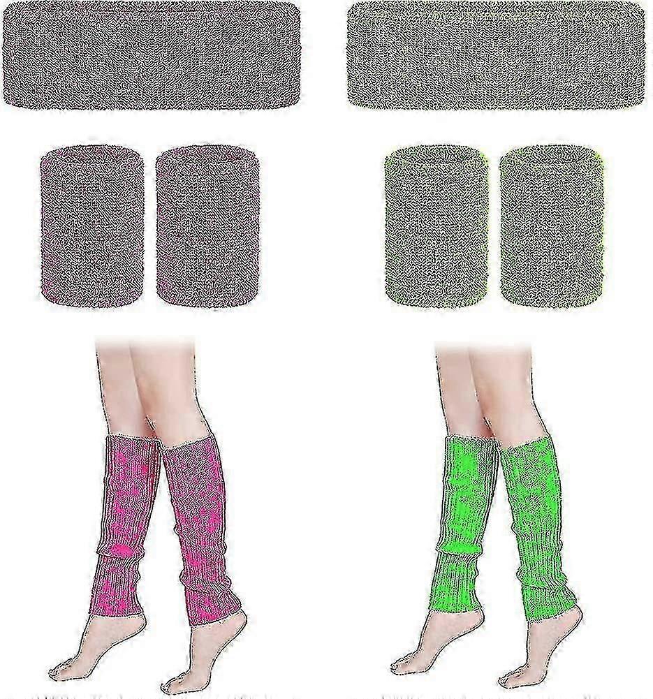 2 Pairs 80s Neon Knit Leg Warmers Knee High Socks, 2 Pieces Running Headband-YGWL