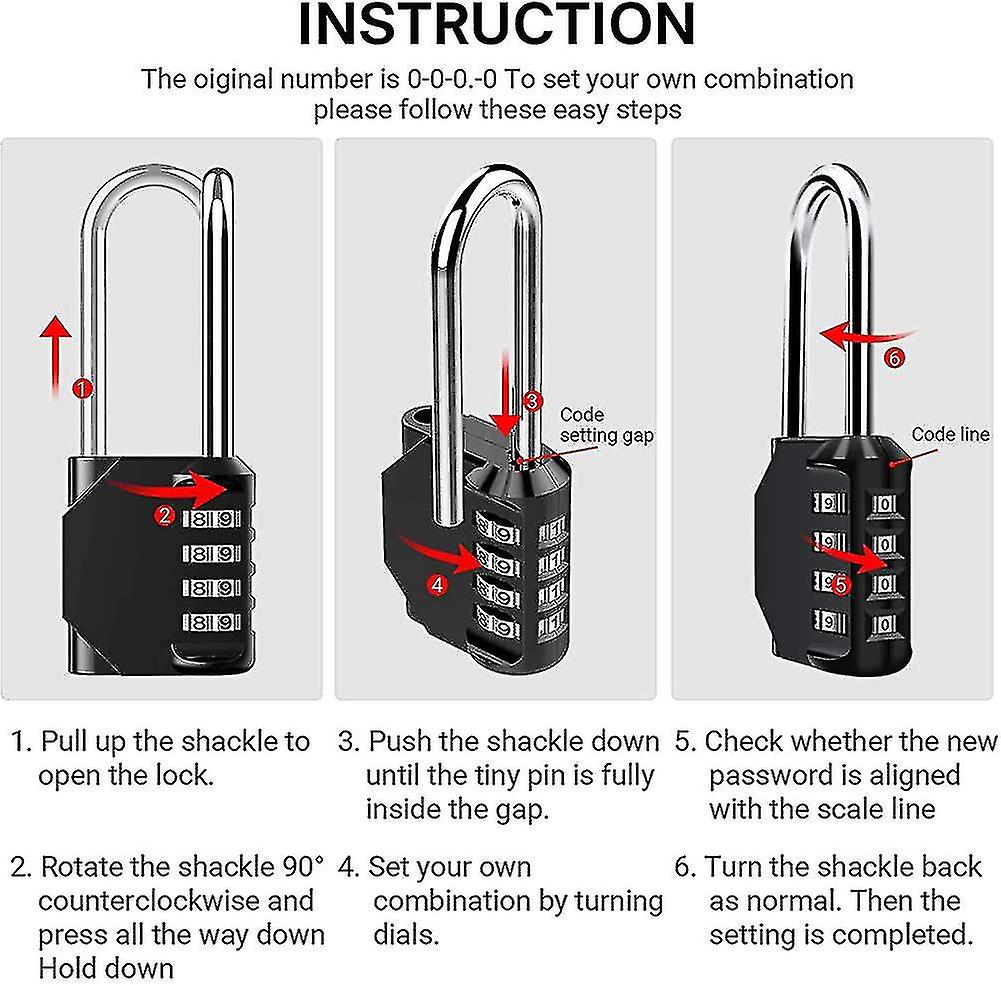 2 Pcs Combination Lock With Long Shackle,4-digit Combination Locks Numbers
