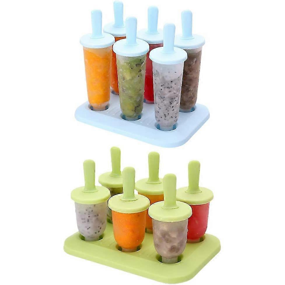 2 Pcs 6 Cells Plastic Round Shape Popsicle Make Molds Reusable Diy Frozen Ice Cream Molds