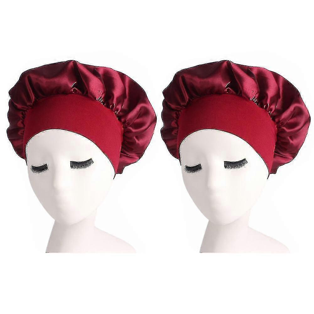 2 Pack Women Satin Solid Sleeping Hat Night Sleep Cap Hair Care Bonnet Nightcap