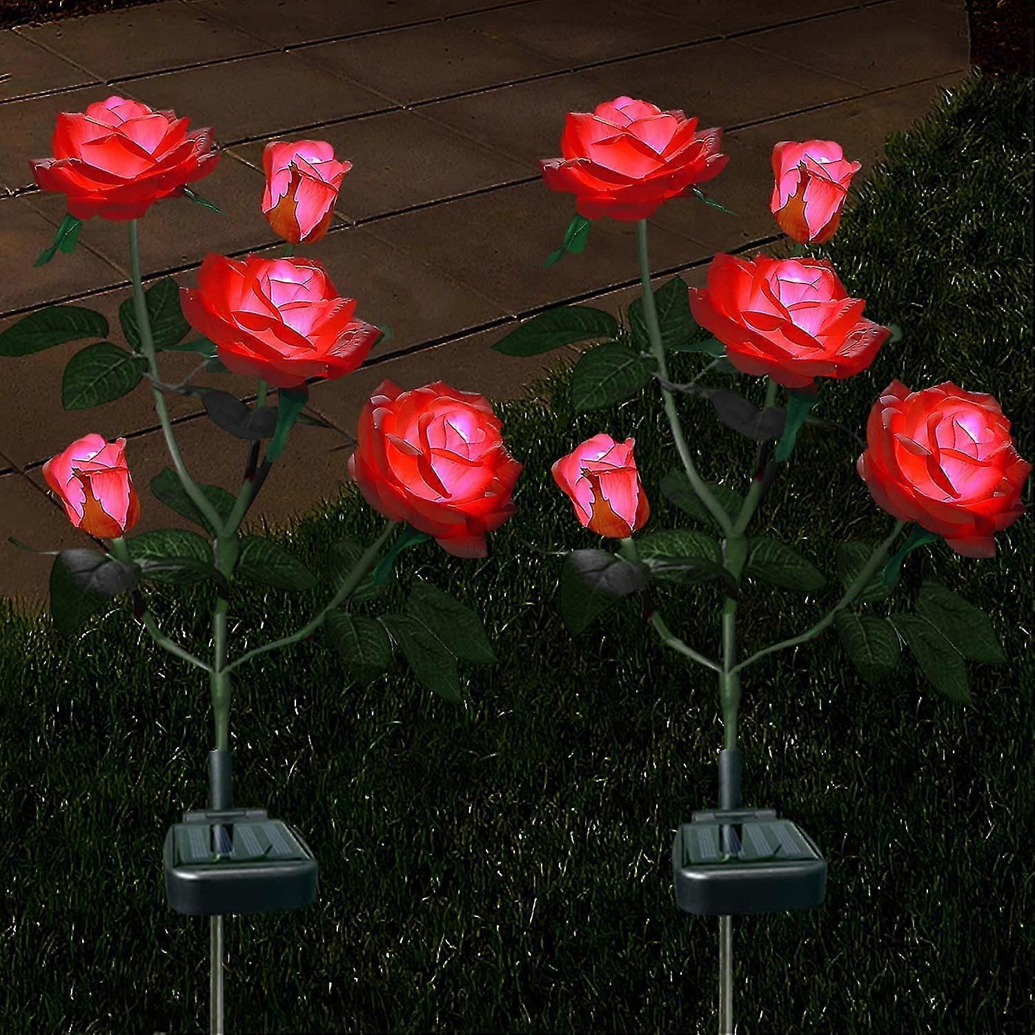 2 Pack Solar Powered Outdoor Decorative Rose Lights For Garden, Yard, Patio, Driveway - Waterproof - Red