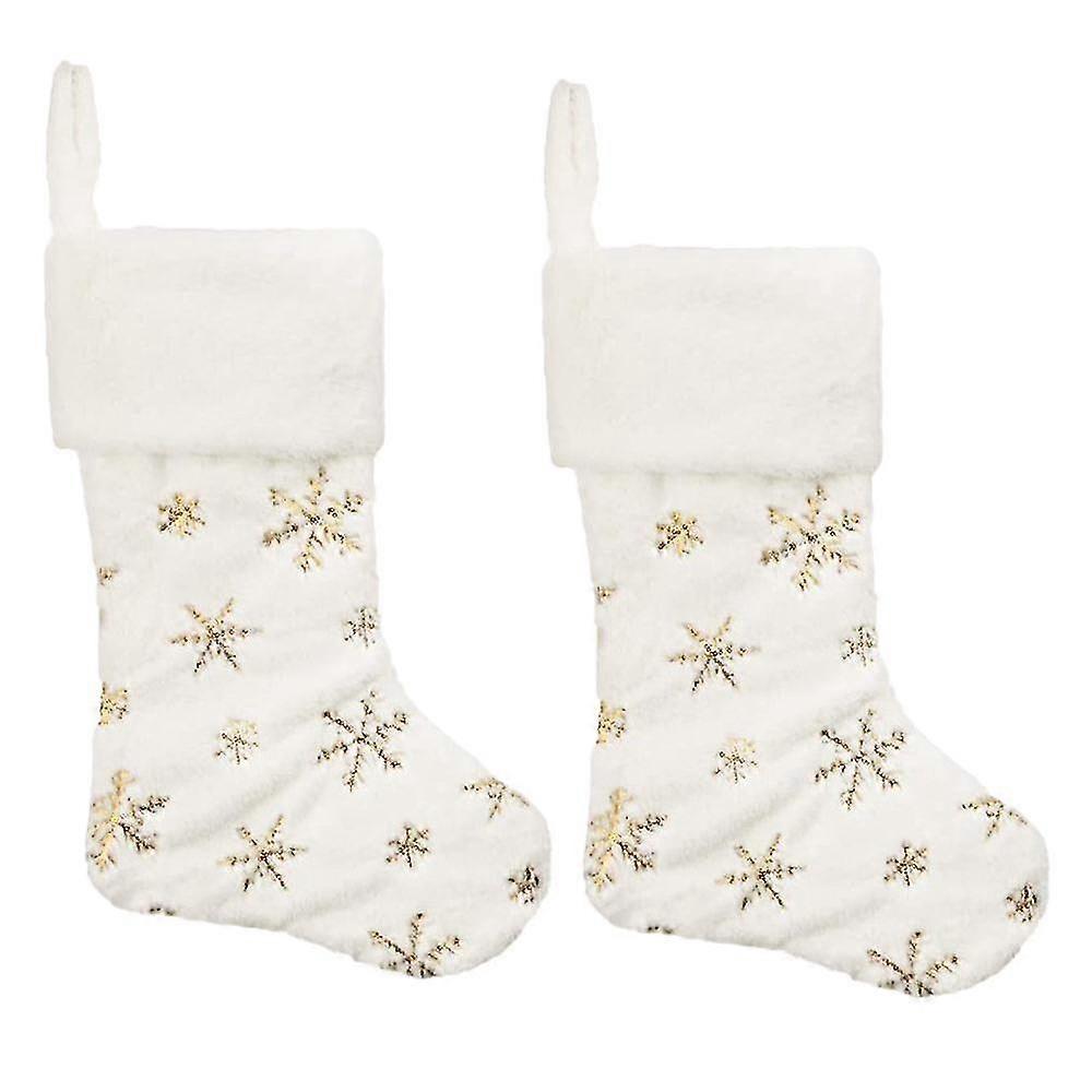 2 Pack Snowy White Christmas Stockings With Embroidered Snowflake Hanging For Xmas Party Decoration