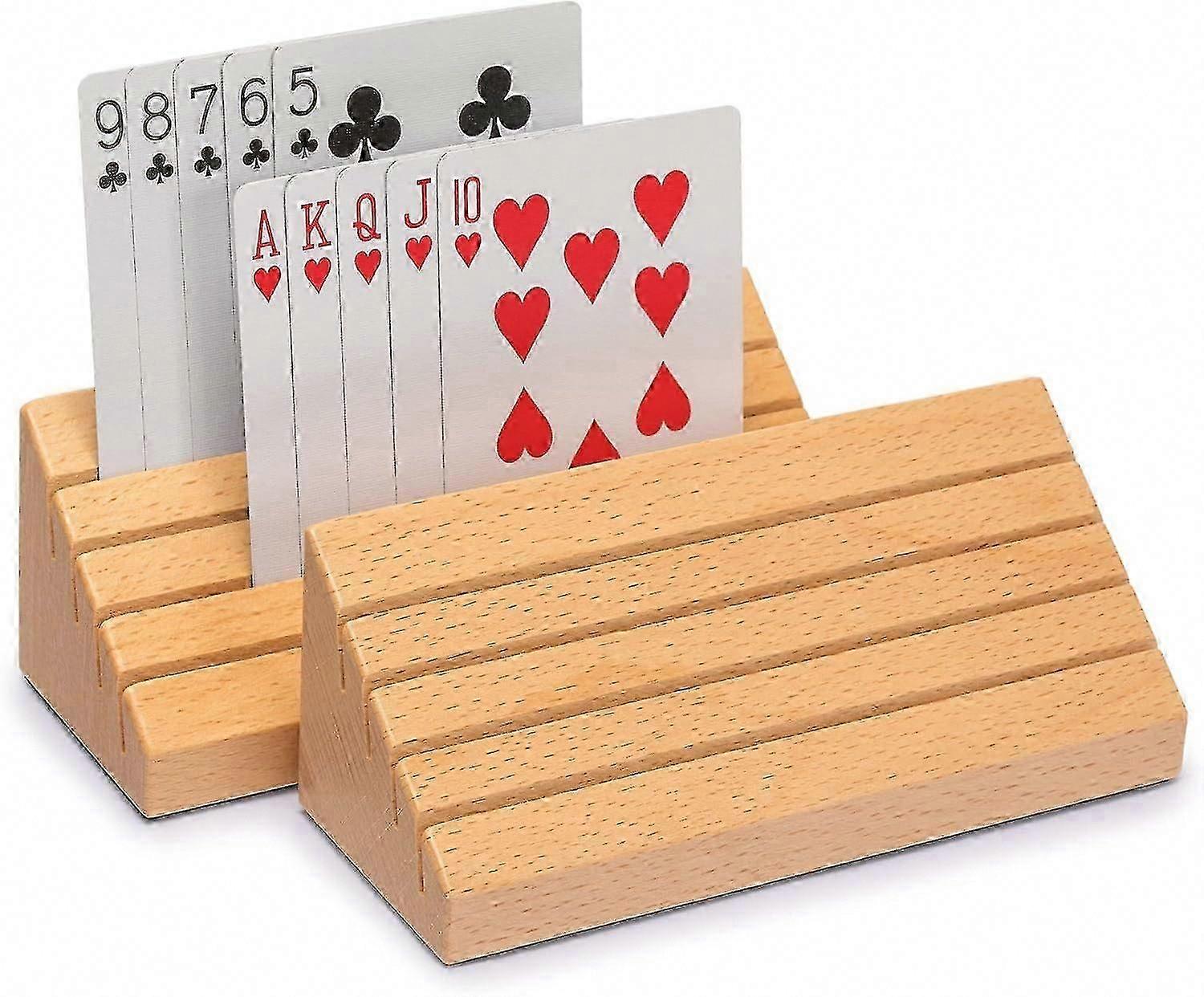2-Pack Wooden Playing Card Holders, Solid Wood Base, Hands-Free Storage Rack for Cards