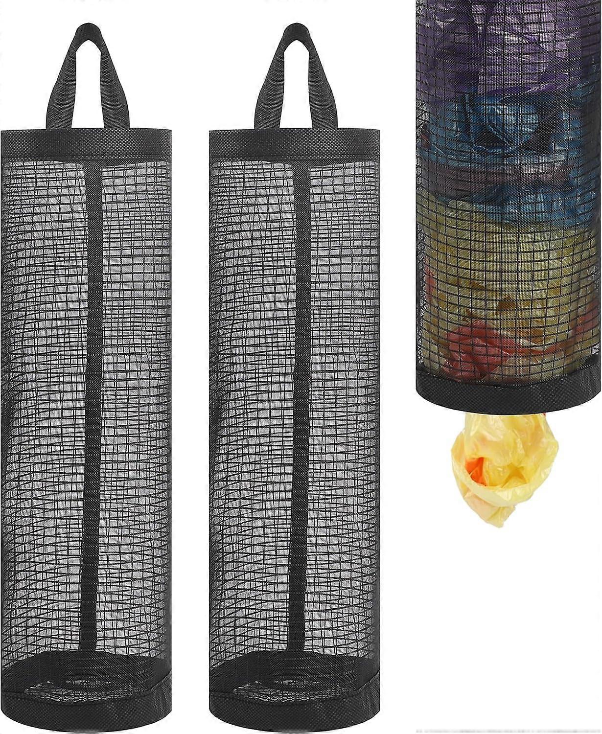 2Pack Carrier Bag Storage Holder Grocery Bag Holder for Plastic Bags Mesh Hanging Dispenser Trash Bag Organizer Saver Plastic Shopping Bag Holder for