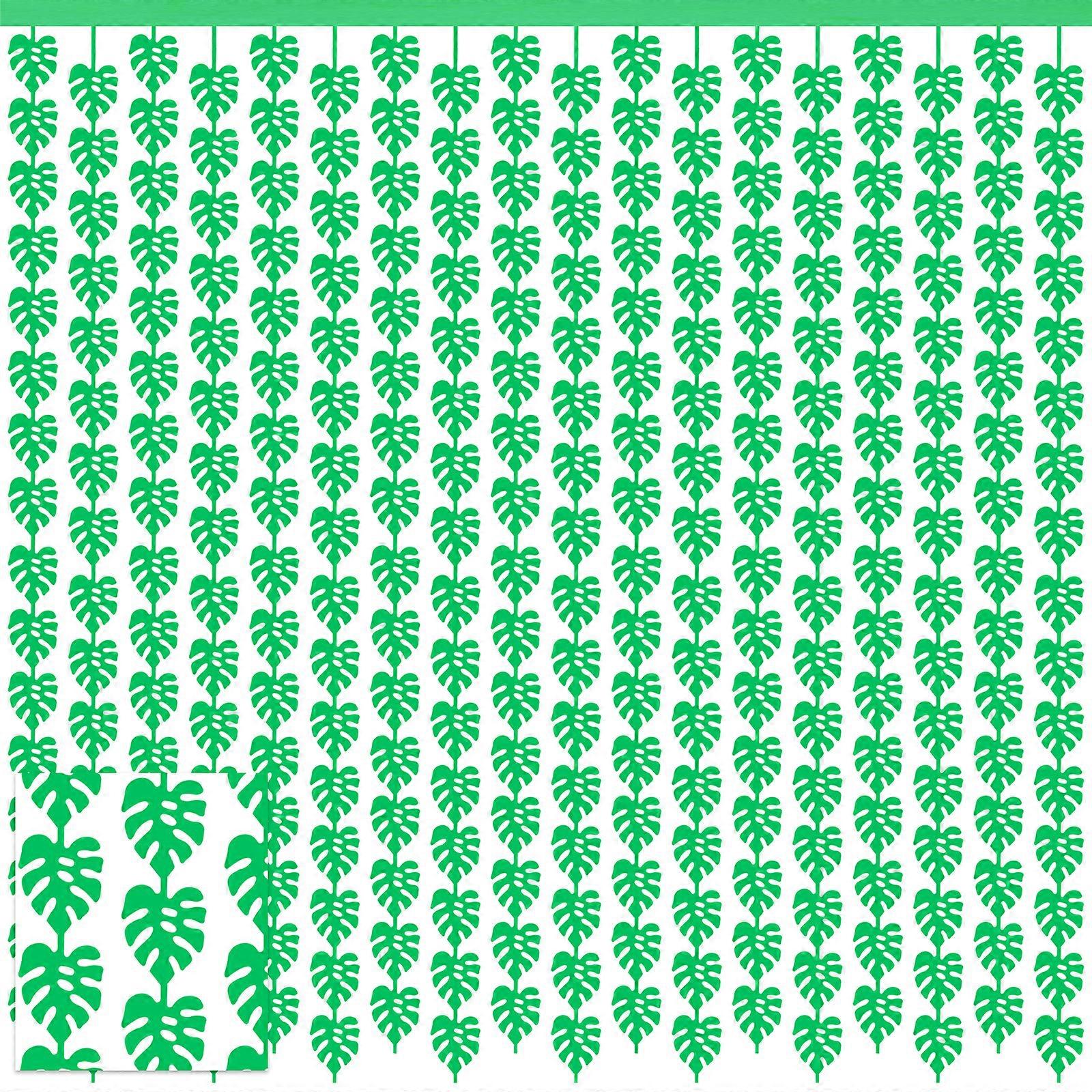 2 Pack Tropical Party Decorations 3.3x6.6ft Green Palm Leaves Photo Booth Prop Summer Jungle Leaf Foil Fringe Curtains For Hawai