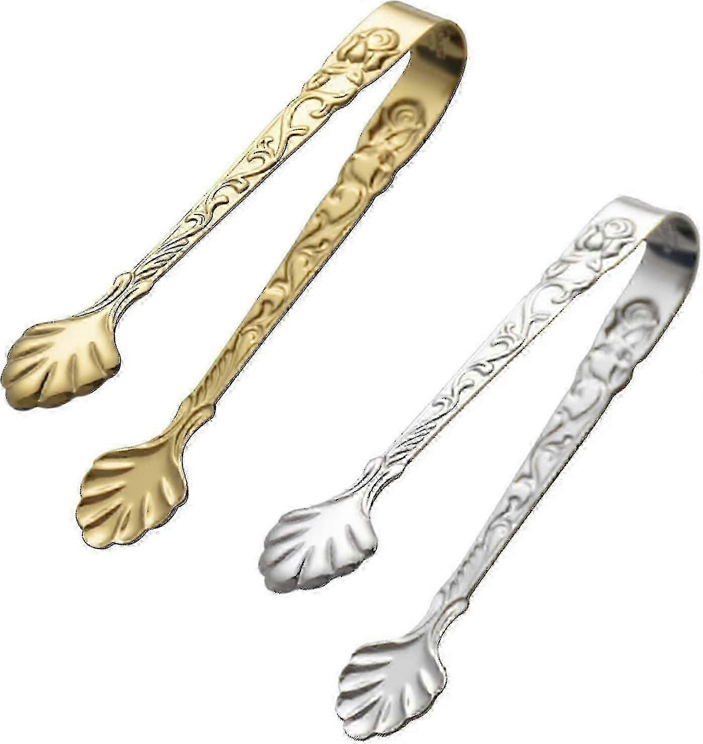 2 Pack Rose Handle Sugar Tongs, Vintage Rose Relief Stainless Steel Ice Cube Clips
