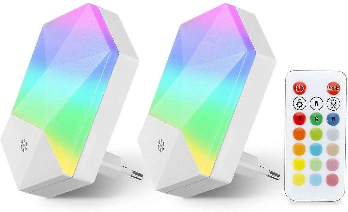 2 Pack Night Light Led Children Night Lamp Baby Plug And Play With Remote Control 16 Colors Adjustable