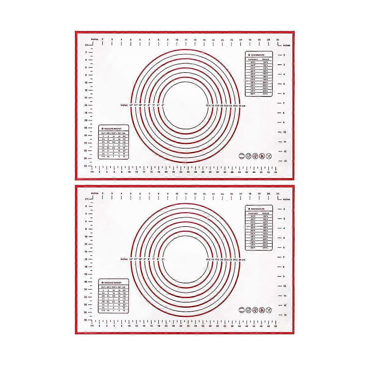 2 Pack Non-stick Silicone Baking Mat Pastry Mat With Measurements Perfect For For Pizza, Cake, Brea