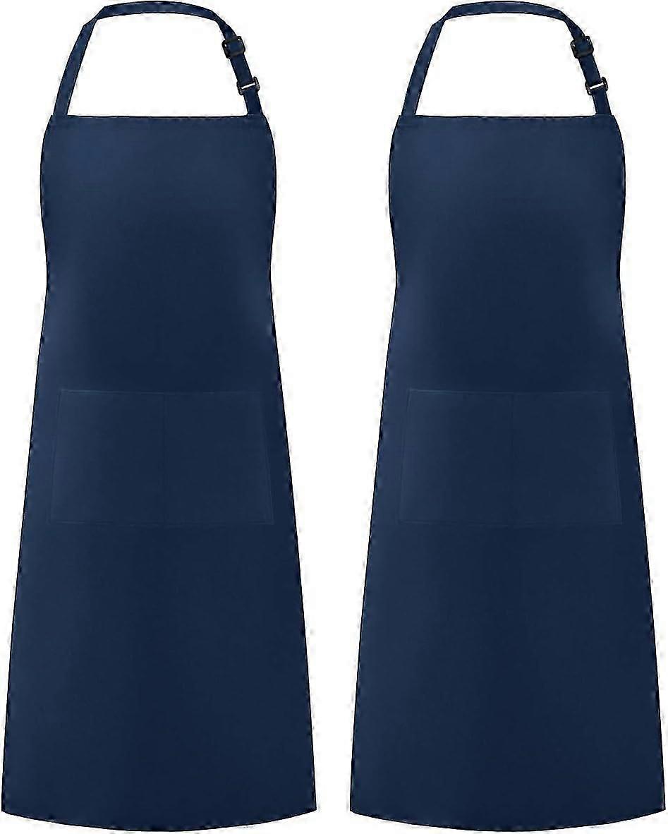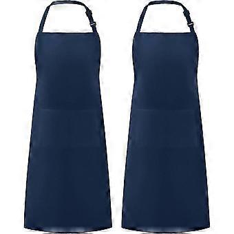 2 Pack Adjustable Bib Apron Waterdrop Resistant with 2 Pockets Cooking Kitchen Aprons for BBQ Drawing, Women Men Chef, Nautical Blue