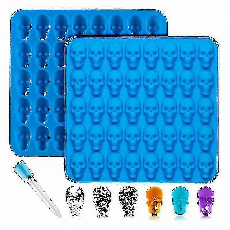 2-Pack Silicone Skull Candy Molds with Dropper for Blue Candy Making