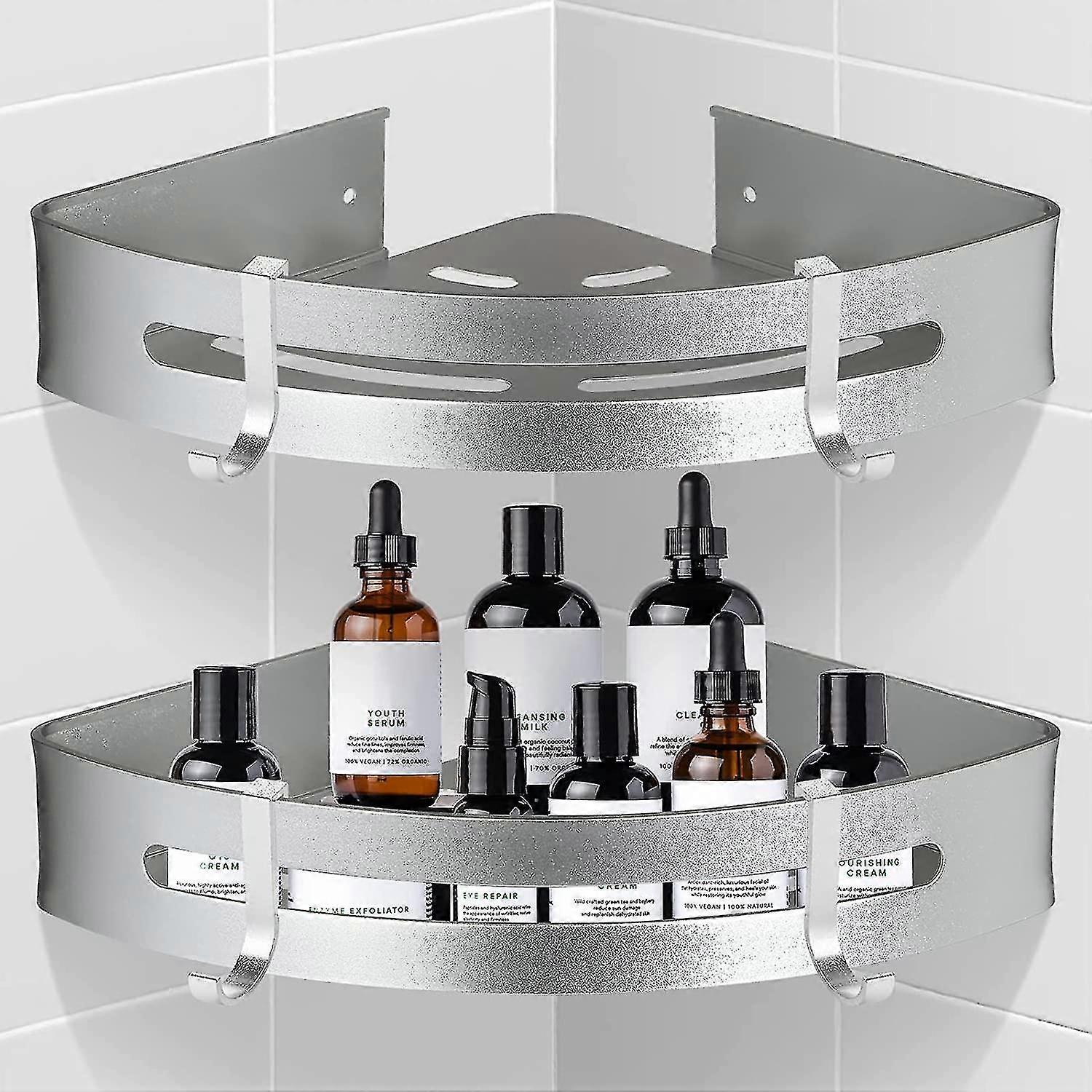 2 Pack No Drilling Adhesive Wall Mounted Bathroom Shower Shelf Storage Organizer With 4 Hooks (black)