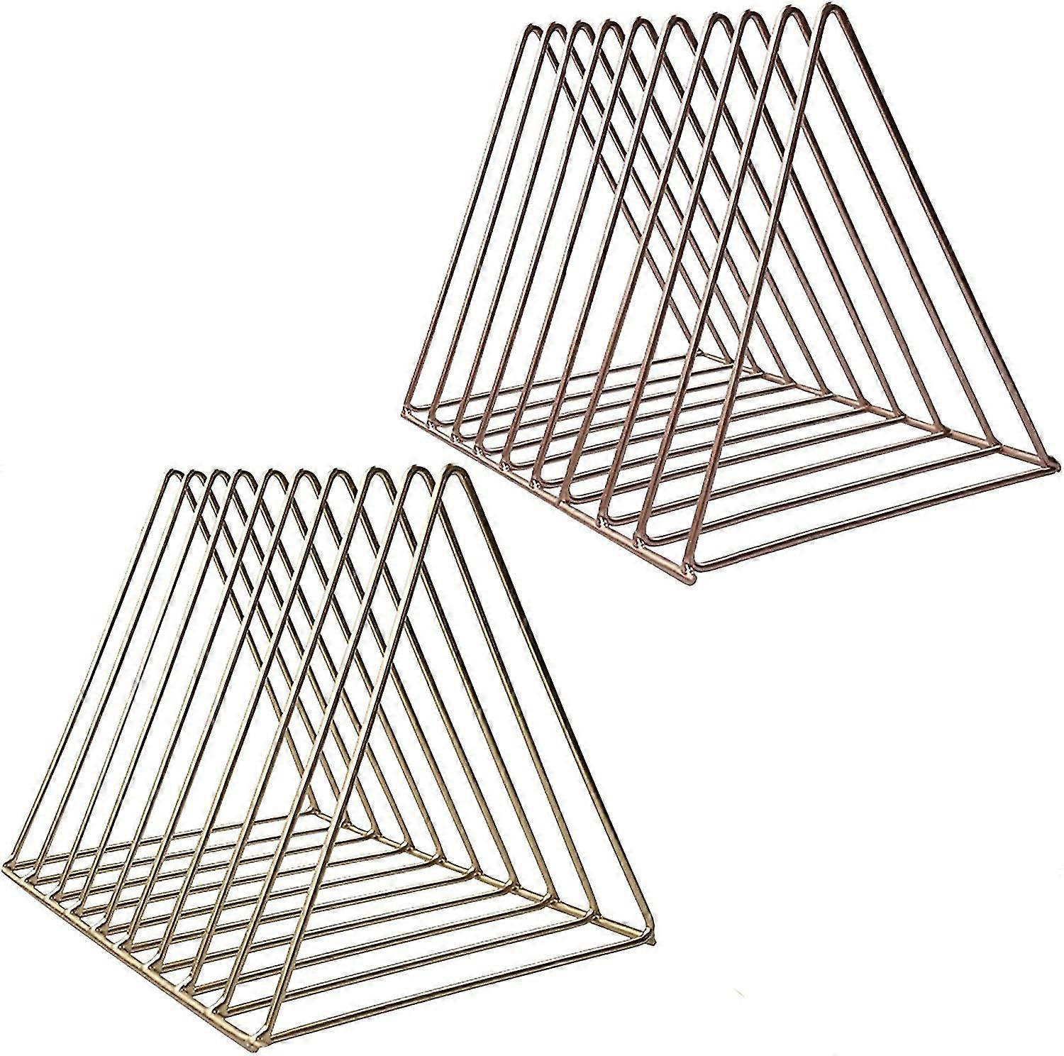2 Pack Triangle Desktop Magazine File Holder Rack, Sturdy 9 Slot Iron Storage Book Sorter Organizer (gold And Rose)