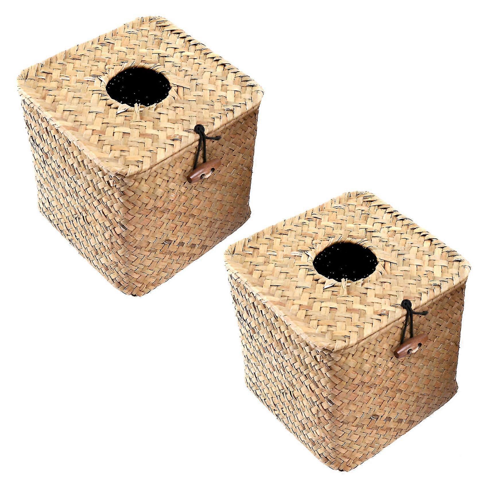2 Pack Square Seagrass Facial Tissue Box - Decorative Woven Paper Holder Napkin Dispenser - Straw T