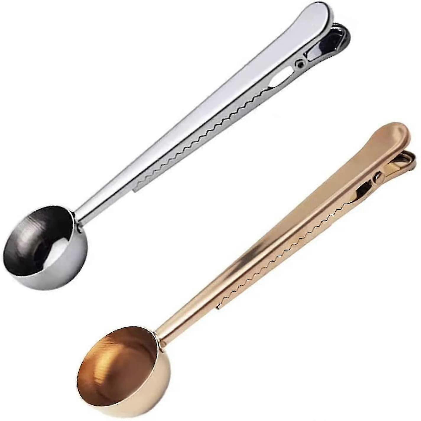 2 Pack Coffee Scoop With Bag Clip Stainless Steel Coffee Measuring Spoon Coffee Scoop With Bag Sealing Clip For Ground Coffee Coffee Beans Loose Tea S