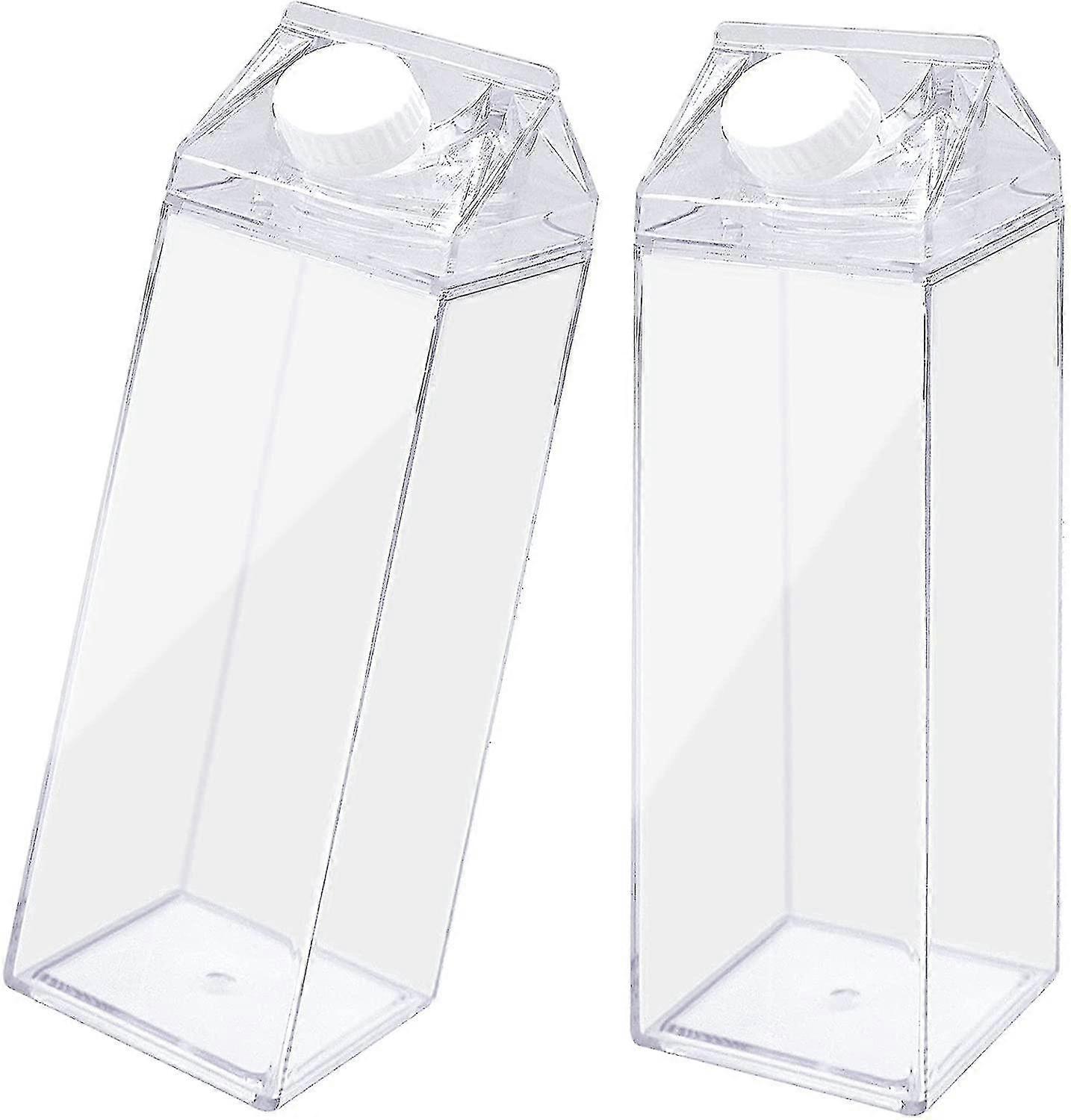 2 Pack Clear Milk Carton Water Bottle Reusable Square Milk Bottle