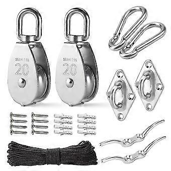 2 Pack M20 Stainless Steel Pulley System Kit-Heavy-Duty Pulley Wheel, Pulley Block with Nylon Rope
