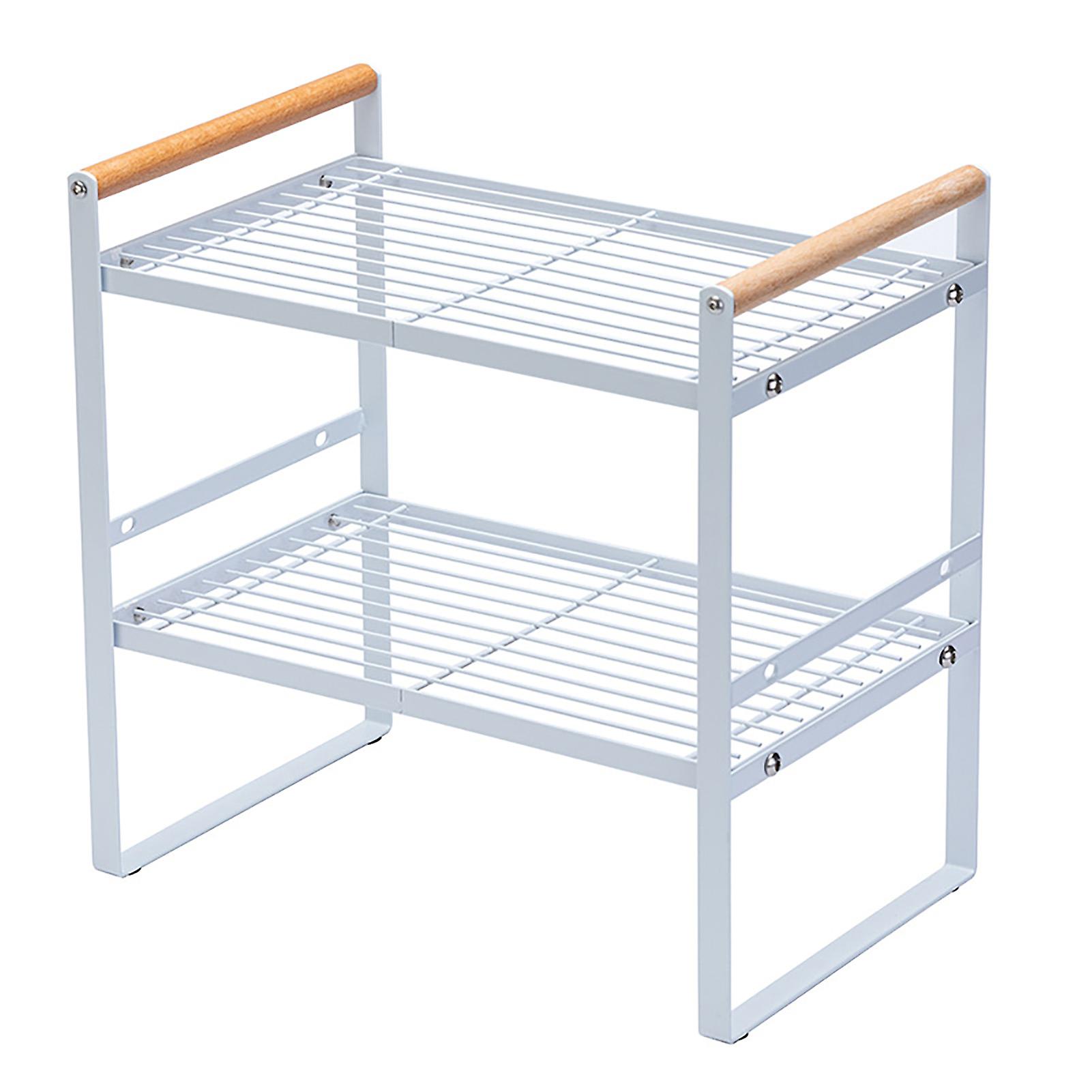 2 Tier Kitchen Storage Rack Double Layer Organizer Shelf Non Slip Design, Multifunctional Countertop Spice Holder White for Pantry Cabinet
