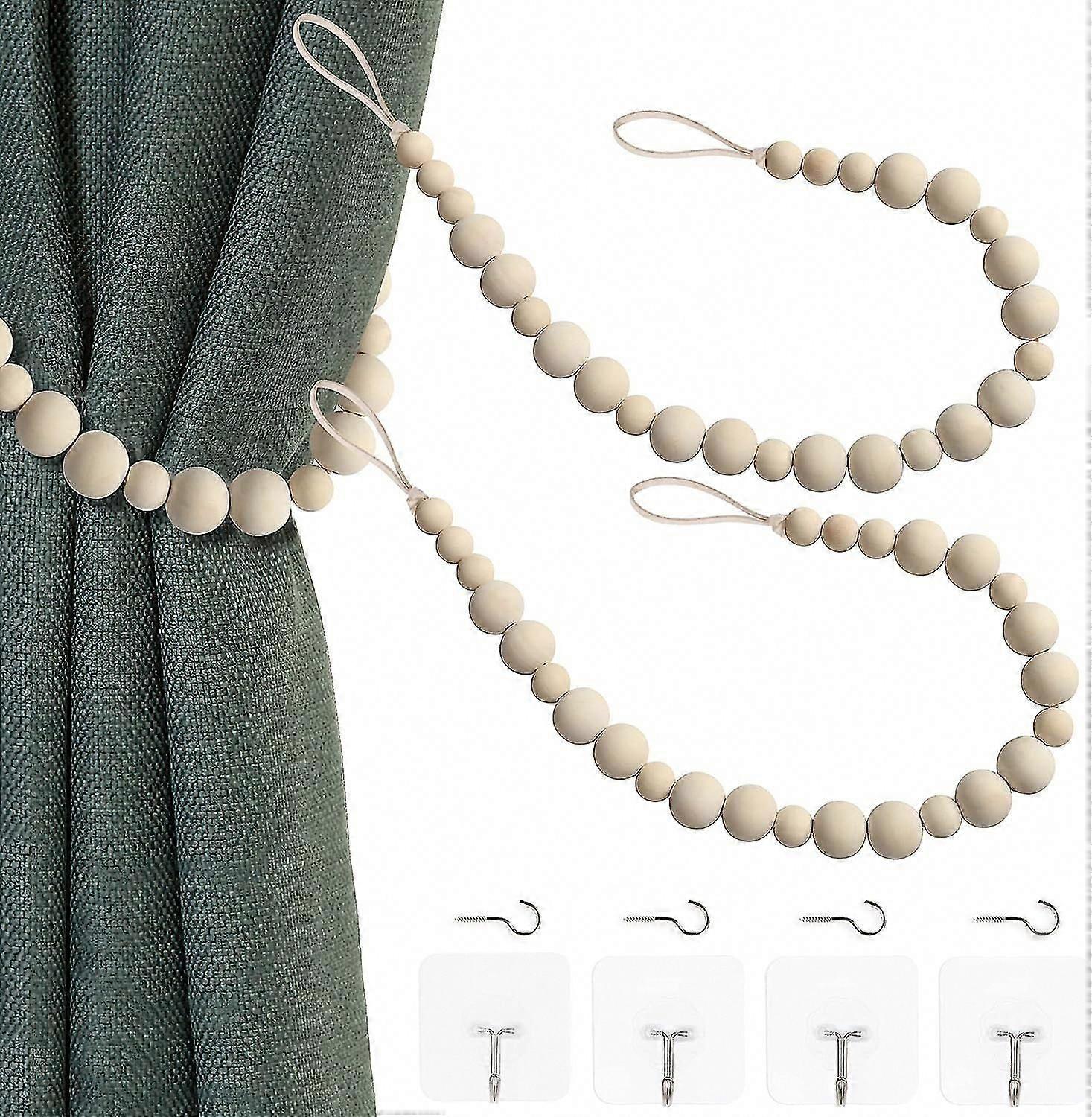 2 Bohemian Curtain Tiebacks for Farmhouse, Bedroom, Dining Room - Wood Color, 2 Pieces