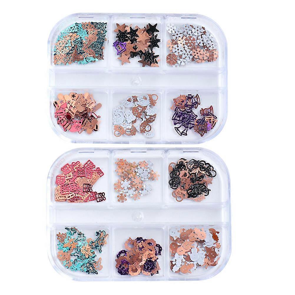 2 Boxes Christmas Nail Art Decals Gold Hollow Snowflake, Bell & Reindeer Design Nail Stickers for DIY Manicure Ornaments