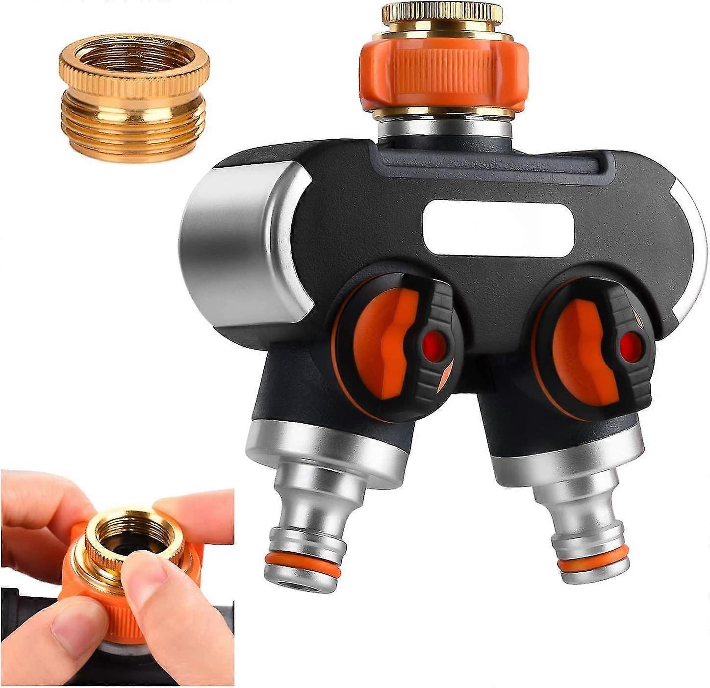 2-Way Hose Splitter, 2-Way Y-Distributor, 3/4" and 1/2" Garden Hose Splitters Adjustable Flow and Lockable Ideal for Outdoor Faucet and Garden Faucet