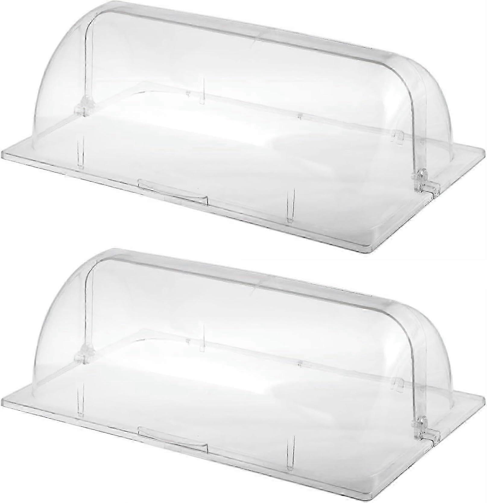 2 Packs Clear Plastic Chafing Dish Covers, Roll Top Bakery Pan Lids for Cake Cupcake Display (Rectangular)