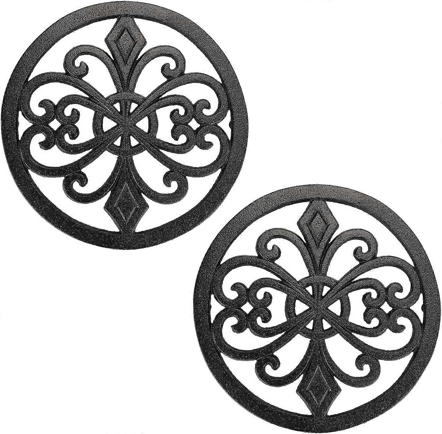 2 Packs 8" Heavy Duty Cast Iron Trivet, Hot Pot Holder, Pan Pads Mat, Metal Trivet Stand for Kitchen or Dining Table, Round