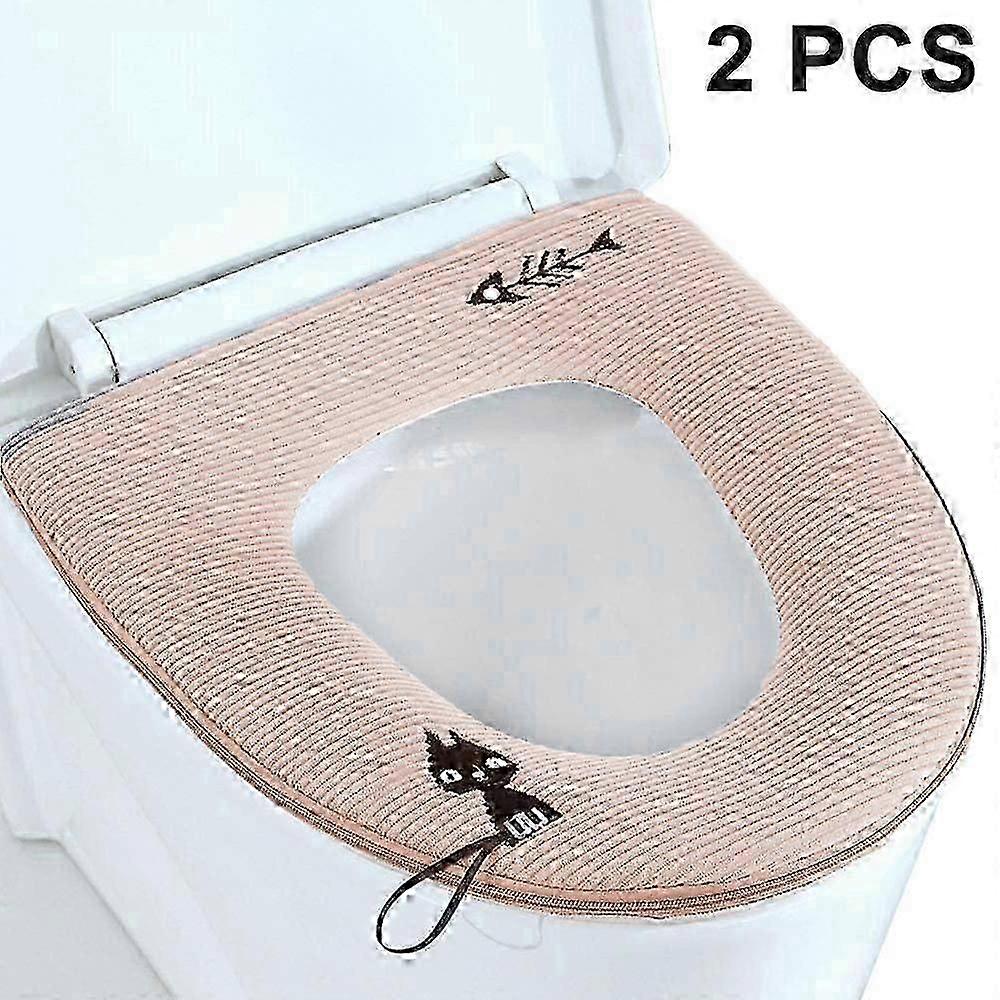 2-Pack Washable Toilet Seat Covers with Zipper, Soft Thickened Warm Pad for Bathroom Comfort