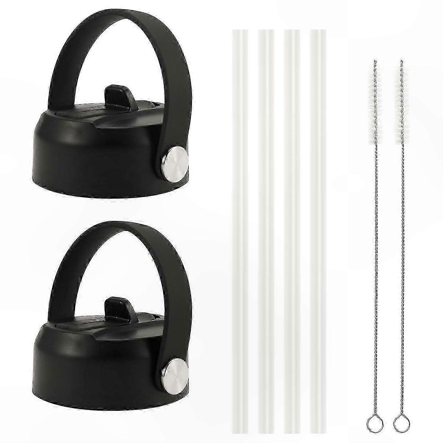 2-Pack Straw Lids for Wide Mouth Bottles, Fits 12oz to 64oz, Durable Flexible Handle Replacement Caps