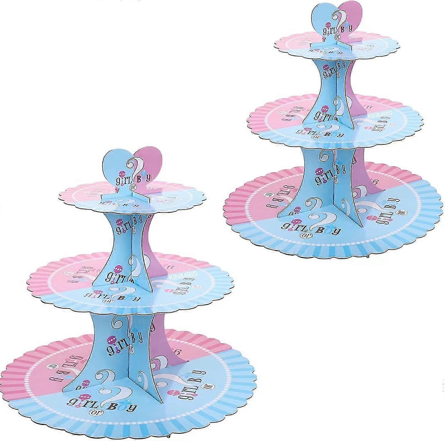 2 Pack Cupcake Stand 3-Tier Lace Edge Dessert Stand, Gender Reveal Baby Cardboard Cupcake Stand, Birthday Party Supplies Tier
