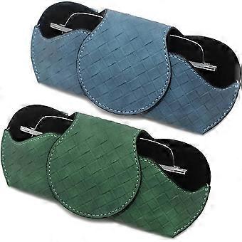 2 Pack Car Sun Visor Sunglasses Holder, Leather Glasses Case with Clips for Car Sun Visor, Automotive Interior Visor Accessories