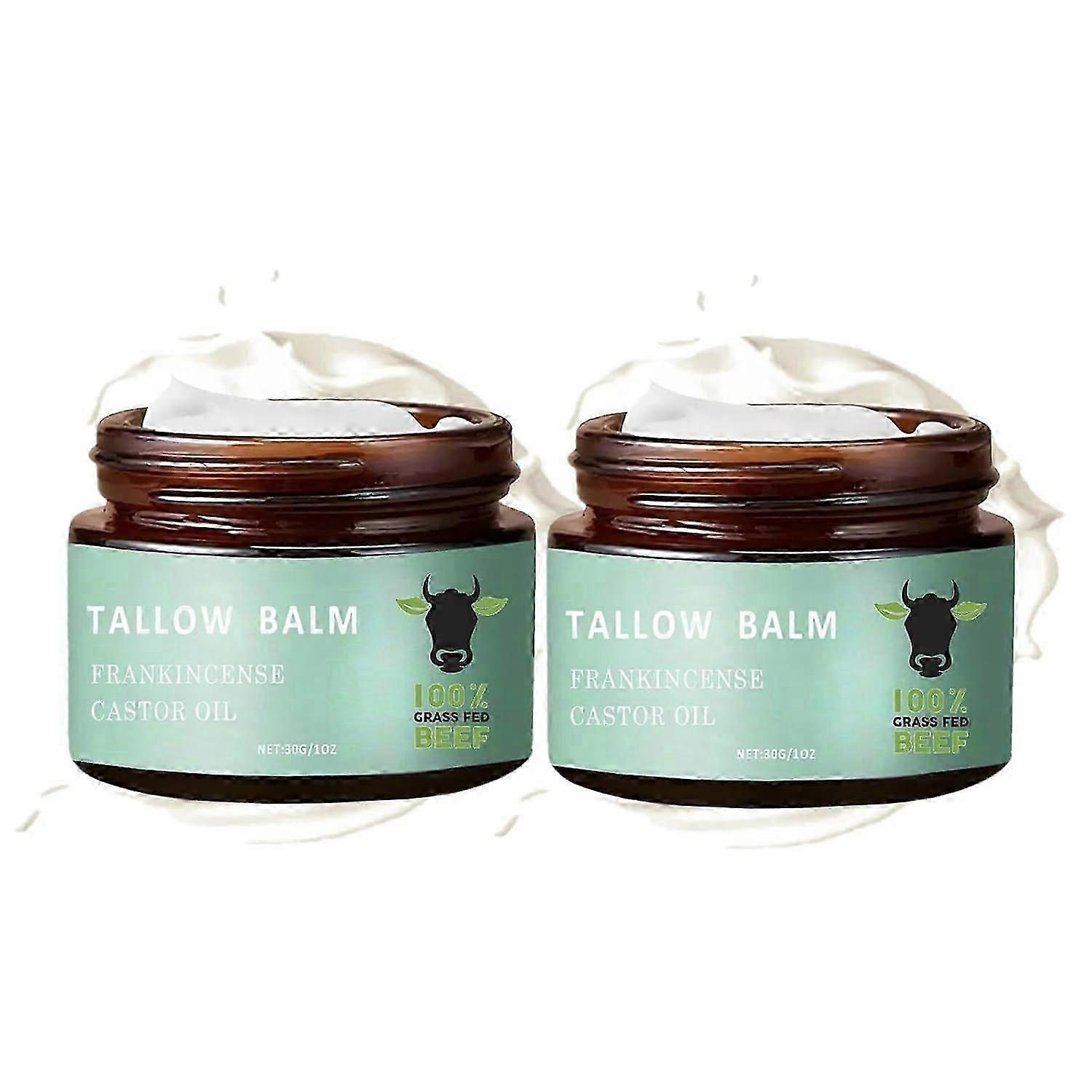 2 Pack Tallow of Grass-Fed Cattle with Frankincense Oil and Castor Oil, Beef Tallow Castor Oil Frankincense, Beef Tallow Moisturising Cream for Skin
