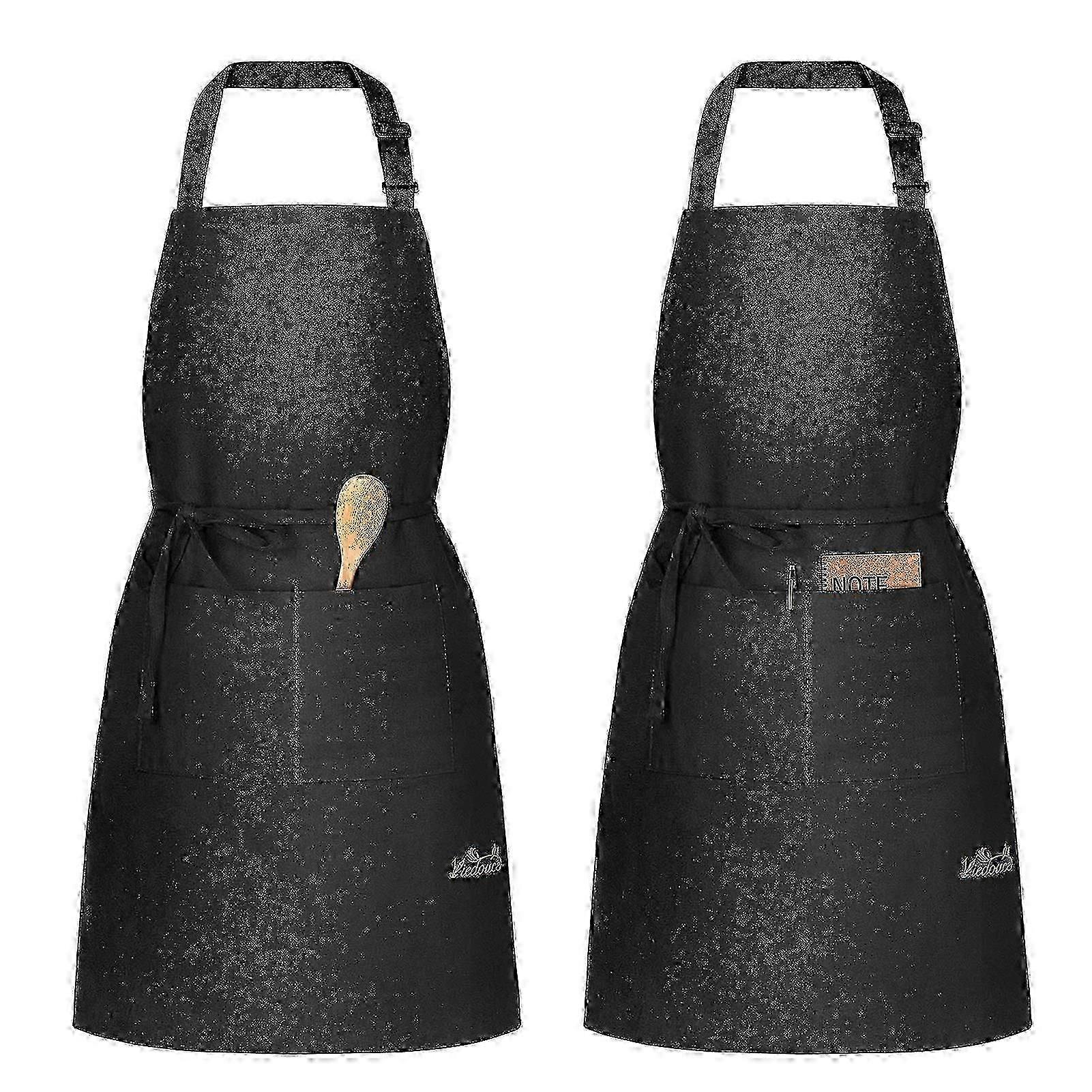 2-Pack Cotton Cooking Aprons with Pockets, Adjustable Black