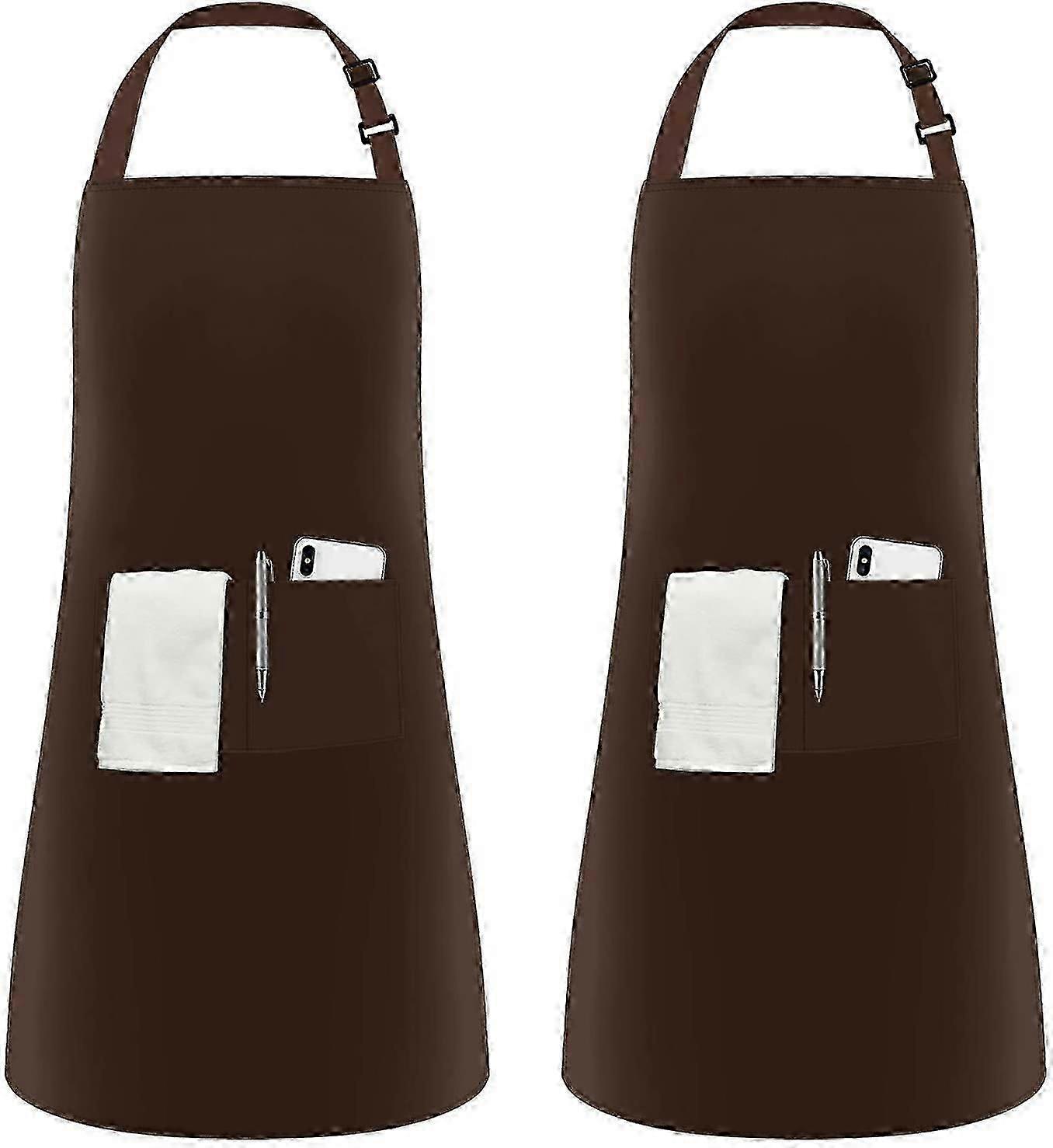 2 Pack Unisex Adjustable Bib Apron with 2 Pockets Cooking Kitchen Chef Women Men Aprons for Home Kitchen, Restaurant, Coffee house (Brown, Polyester)