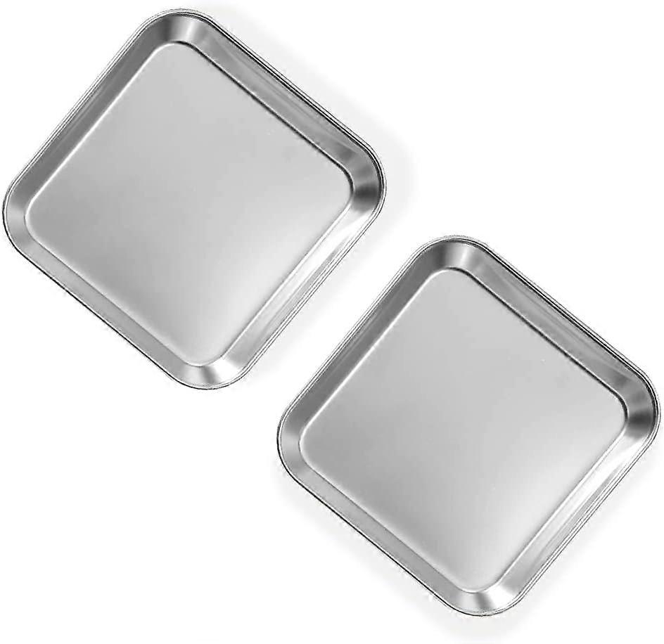 2 Pack Stainless Steel Dinner Plates, Thickened Metal Dish Plate for Food, Small Square Serving Tray for Appetizer Cookie Steak Dessert Salad(Silver)