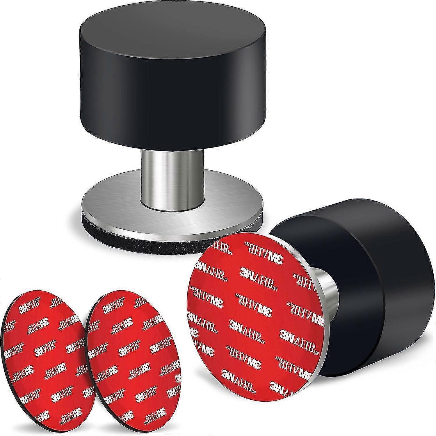 2-Pack Door Stops with Extra Stickers, Self-Adhesive Door Stopper with Black Rubber & Stainless Steel Body