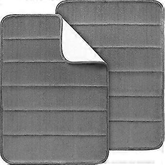 2-Pack Memory Foam Bath Mat Non-Slip Back, Coral Fleece Softness, Highly Absorbent Bathroom Rug, Machine Washable (Grey, 43x60 cm)