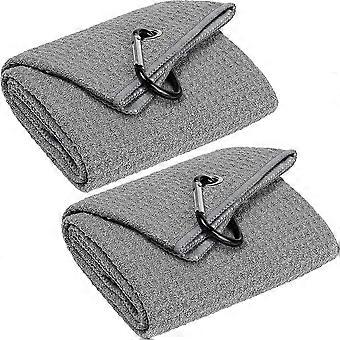 2 Pack Tri-fold Golf Towels, Premium Microfiber Fabric Waffle Pattern with Black Heavy Duty Carabiner Clip